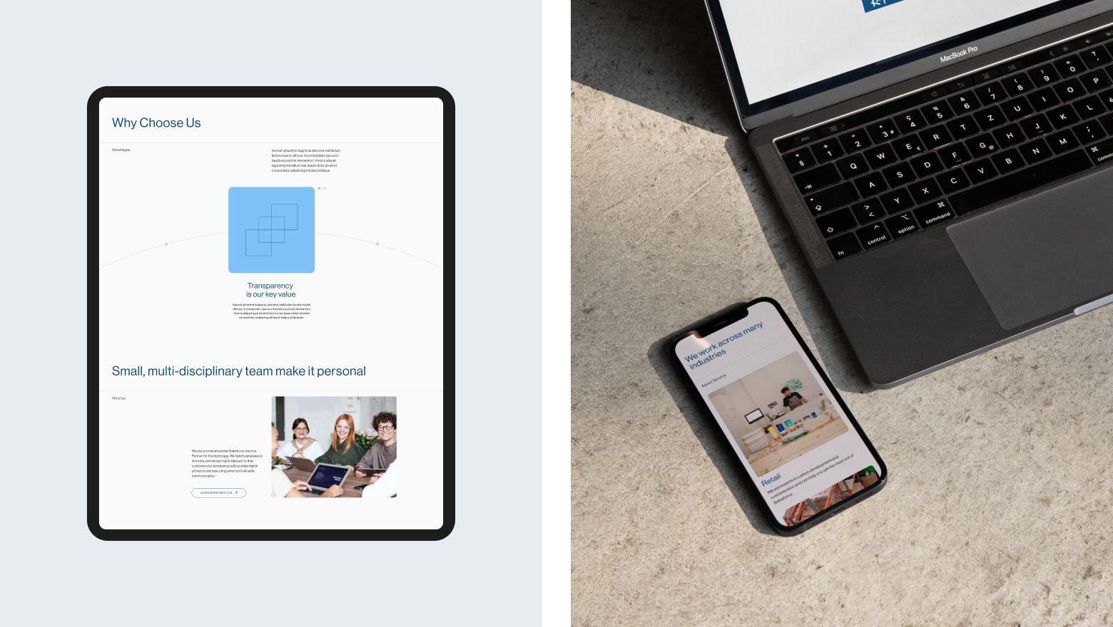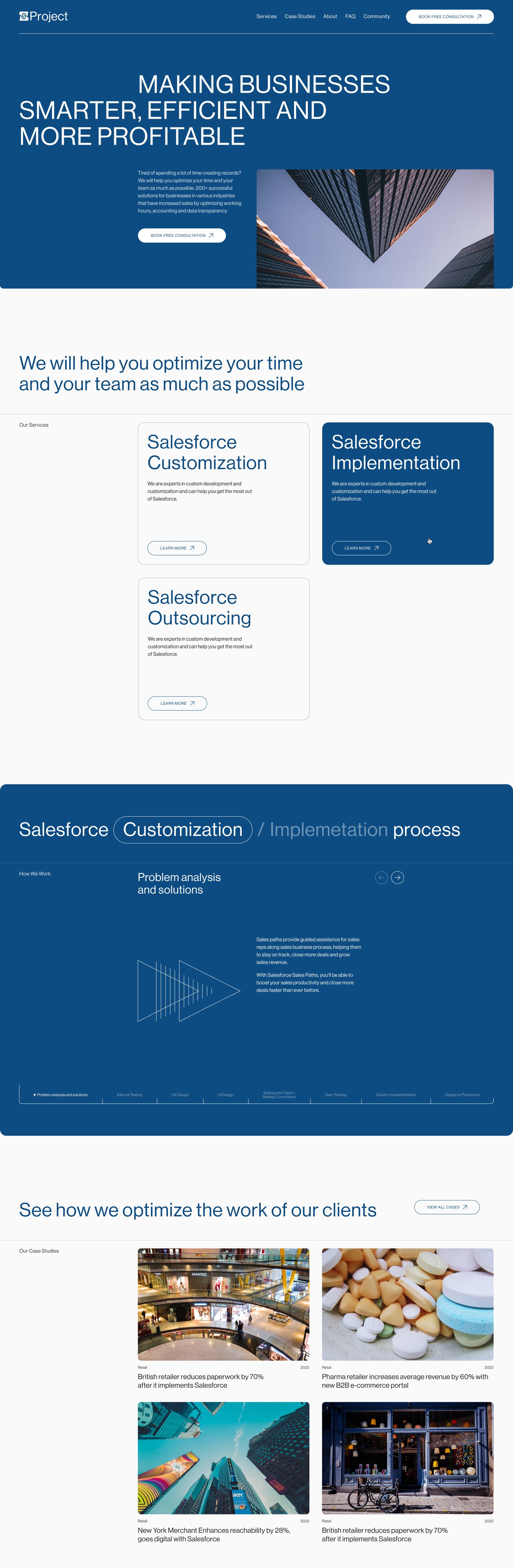 Website for Ukrainian Salesforce customization service provider that works across many industries, focusing more on retail, wholesale and non-profit.