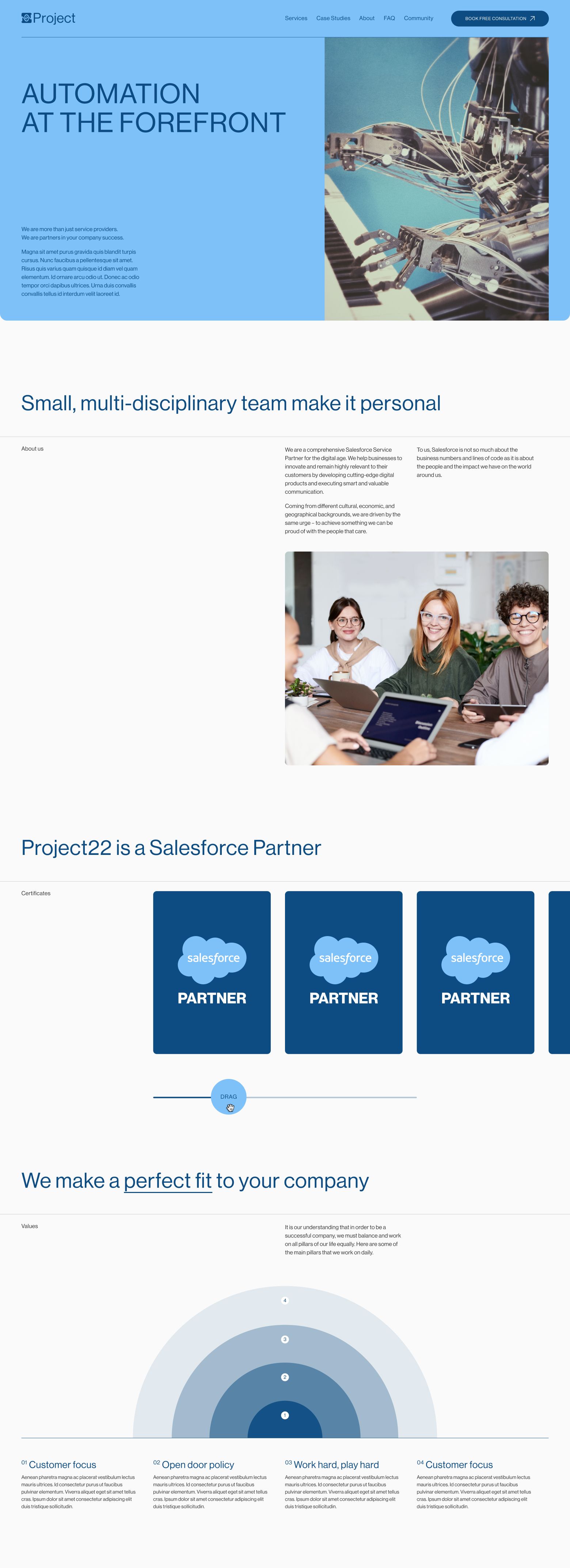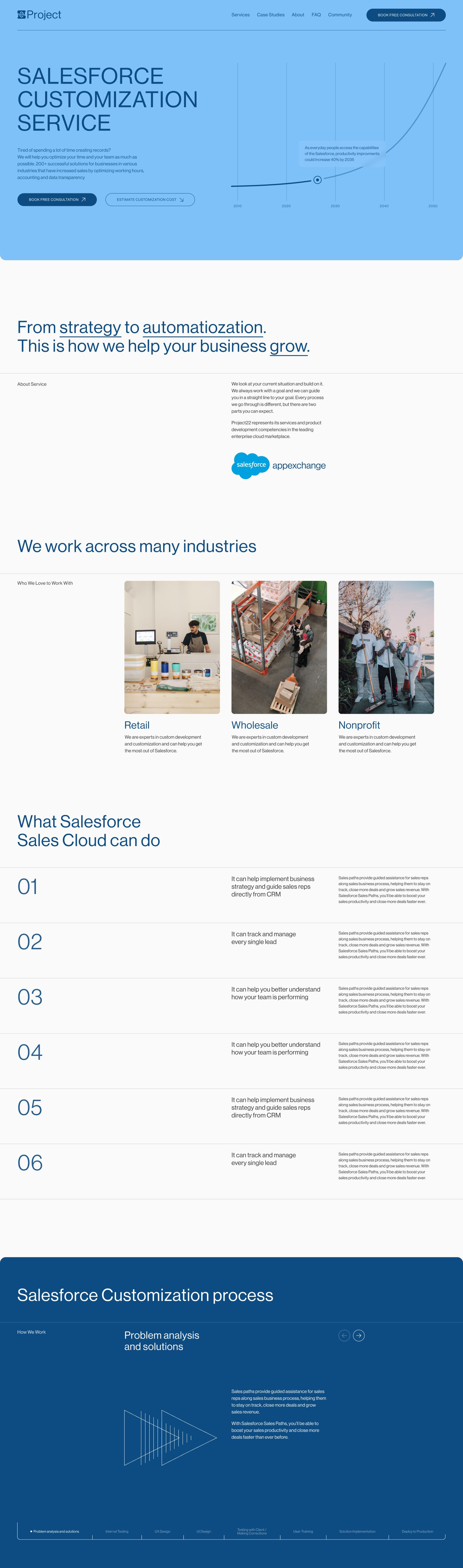 We noticed that competitors often use convoluted language and incomprehensible diagrams that don't clearly explain their services. Therefore, we focused on simplifying all available information and creating a clear narrative. We demonstrated how Project22 operates using straightforward tools like charts, diagrams, bullet points, and other narrative aids to clearly present the implementation process and the costs associated with Salesforce customization.